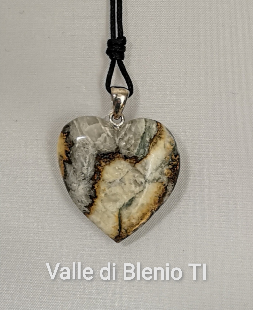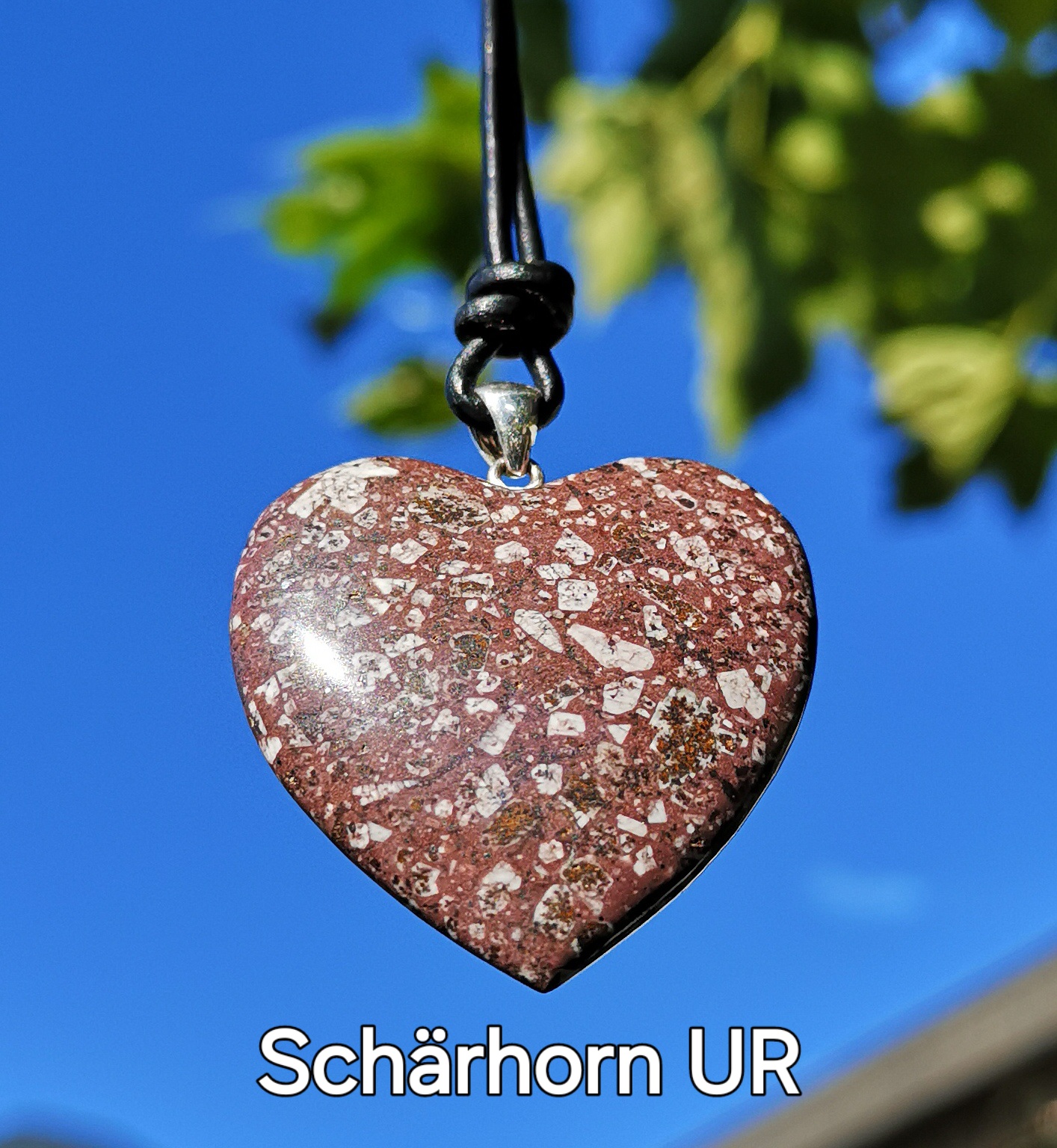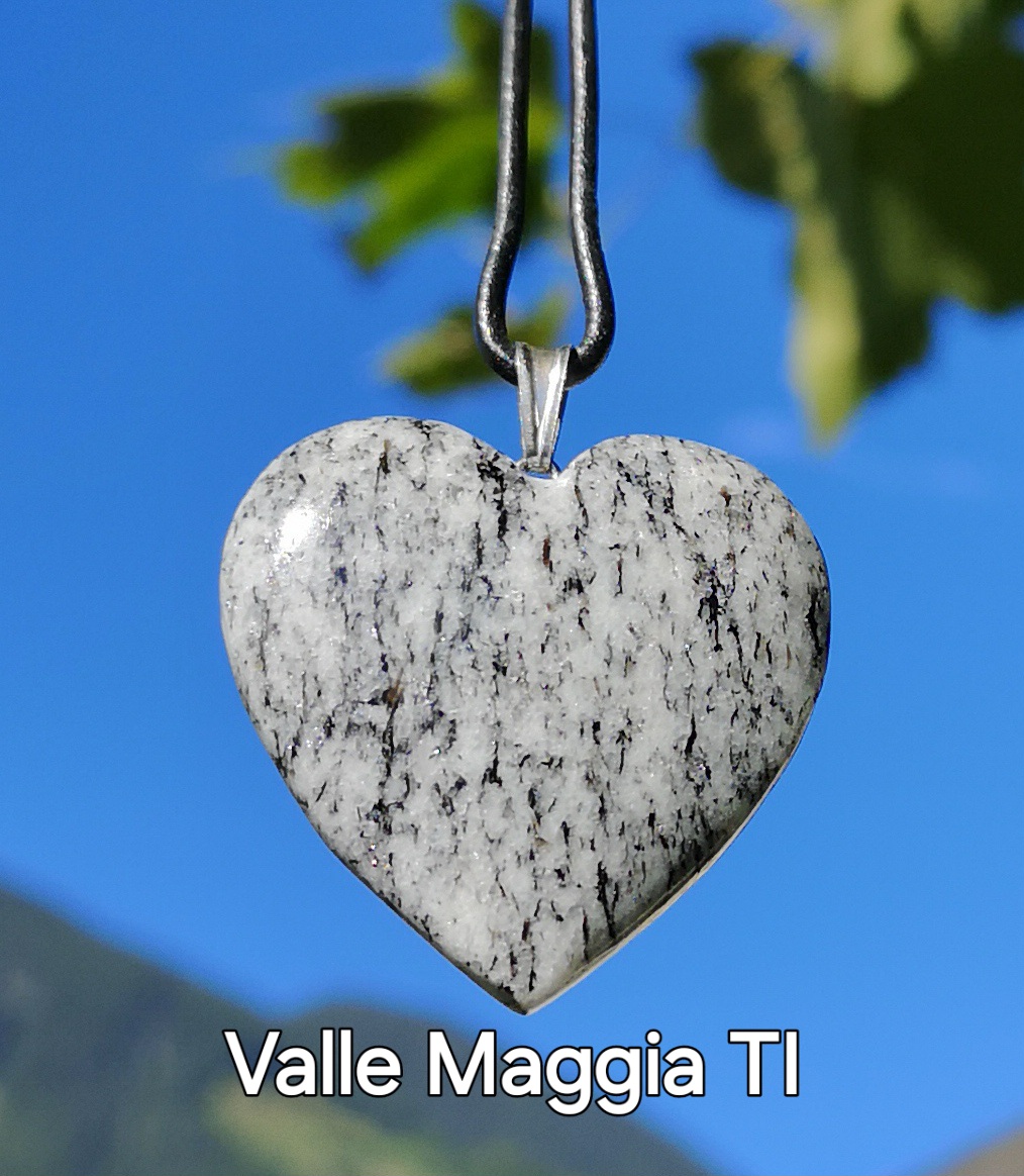 Geschliffene Schweizer Steine verkaufen wir ab Fr. 25.-. Die Steine liefern wir mit einem Lederband (in der Länge einstellbar) oder mit einem Metallreif. Die Anhängeöse ist